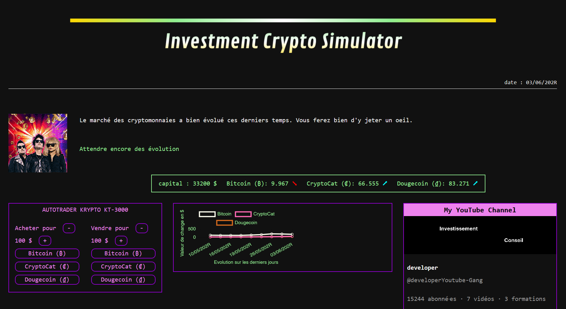 Will you join the Kitties, the Dougers, or even the Youtube Gang ? Only future (and Investment Crypto Simulator) will say.